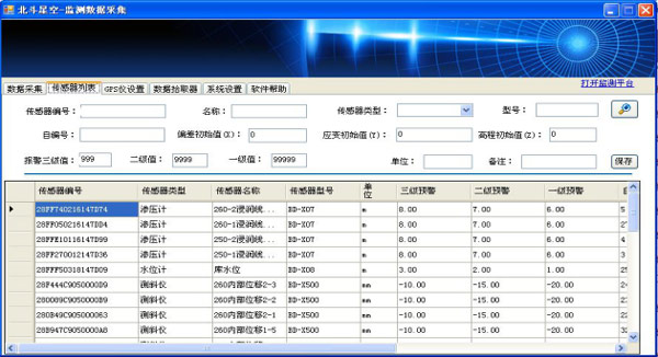 北斗星空通過采集軟件配置相應服務器、站點及傳感器信息與采集箱建立連接,最后通過采集軟件發送采集命令采集數據,并將實時數據存儲到服務器。